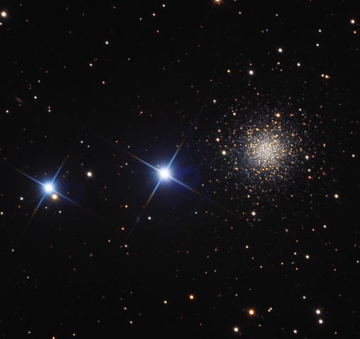 Se pudéssemos de alguma forma ligar a "obra de arte" do céu de verdade, como podemos em um aplicativo de telefone ou programa de computador, veríamos uma flecha nas patas de Vulpecula, a Raposa. Esta é Sagitta, e seu principal propósito parece ser guiar os observadores para a famosa Nebulosa do Haltere (M27), que fica logo ao norte de sua ponta afiada. Mas Sagitta contém um objeto Messier negligenciado: M71, um aglomerado globular a 13.000 anos-luz de distância. M71 é um aglomerado globular solto, o que significa que suas estrelas são menos densamente compactadas do que aquelas em globulares mais conhecidos. Na verdade, provavelmente se parece mais com M44 (o aglomerado aberto Beehive) do que com M13 (o famoso aglomerado globular de Hércules). Um entalhe escuro recortado em seu lado oeste é muito óbvio sob alta ampliação.