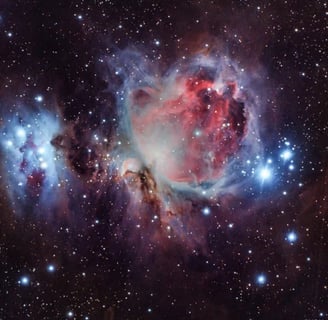 A Nebulosa de Órion, também conhecida como Messier 42, é uma gigantesca nuvem de gás e poeira localizada na constelação de Órion, o Caçador.
